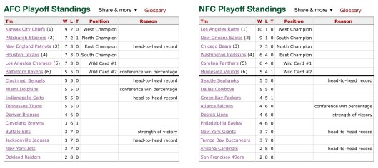 For the first time in 6 or 7 weeks now, the Rams aren’t the favourites for the Super Bowl in terms of betting odds – that position has been taken by the New Orleans Saints who to be fair are looking fantastic after another win this week over the Falcons. All in all, this makes the betting chart look like this: